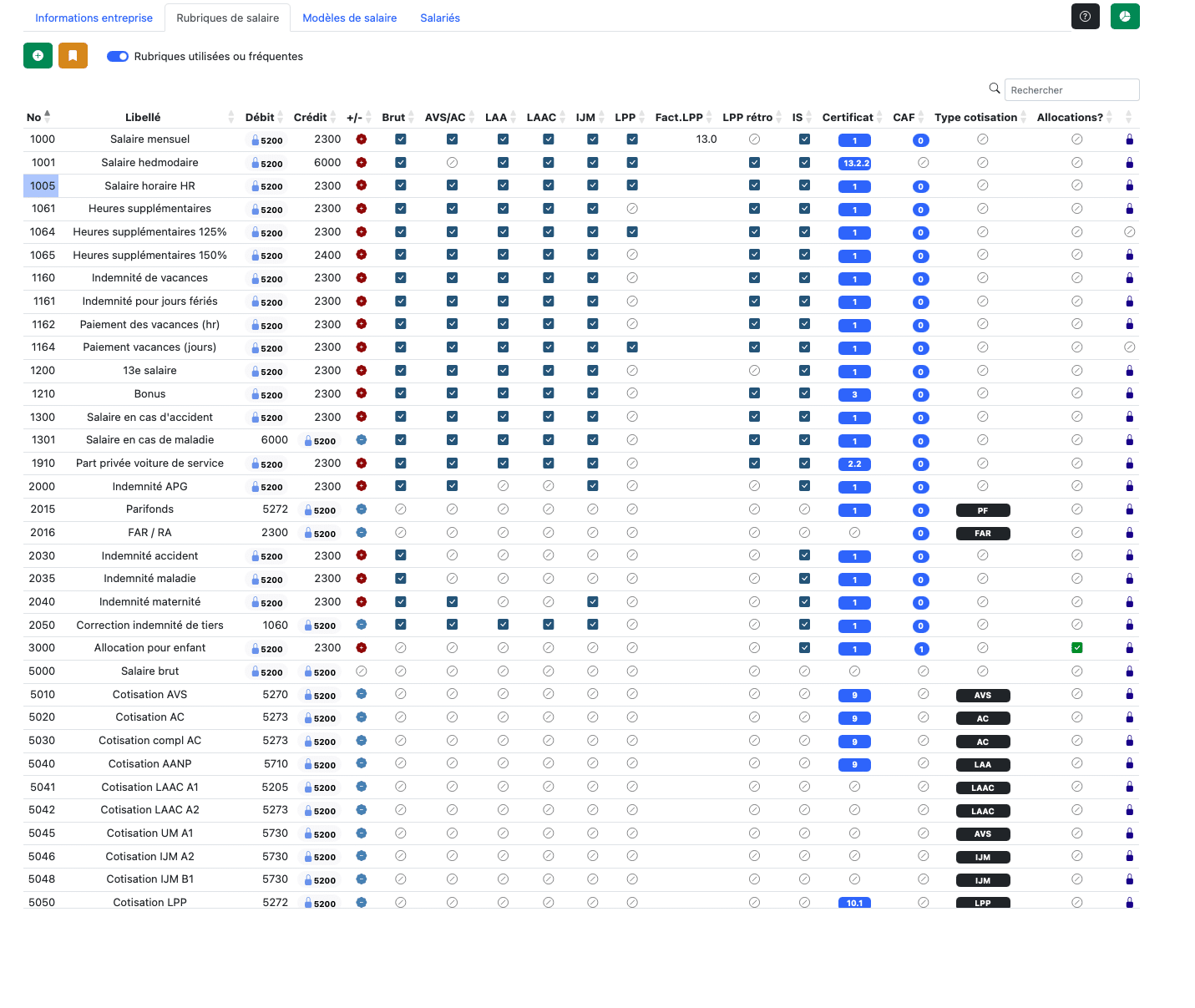 Les rapports AVS, LPP, LAA, IS, LPP, IJM, Parifonds et FAR sont disponibles sans paramétrages supplémentaires